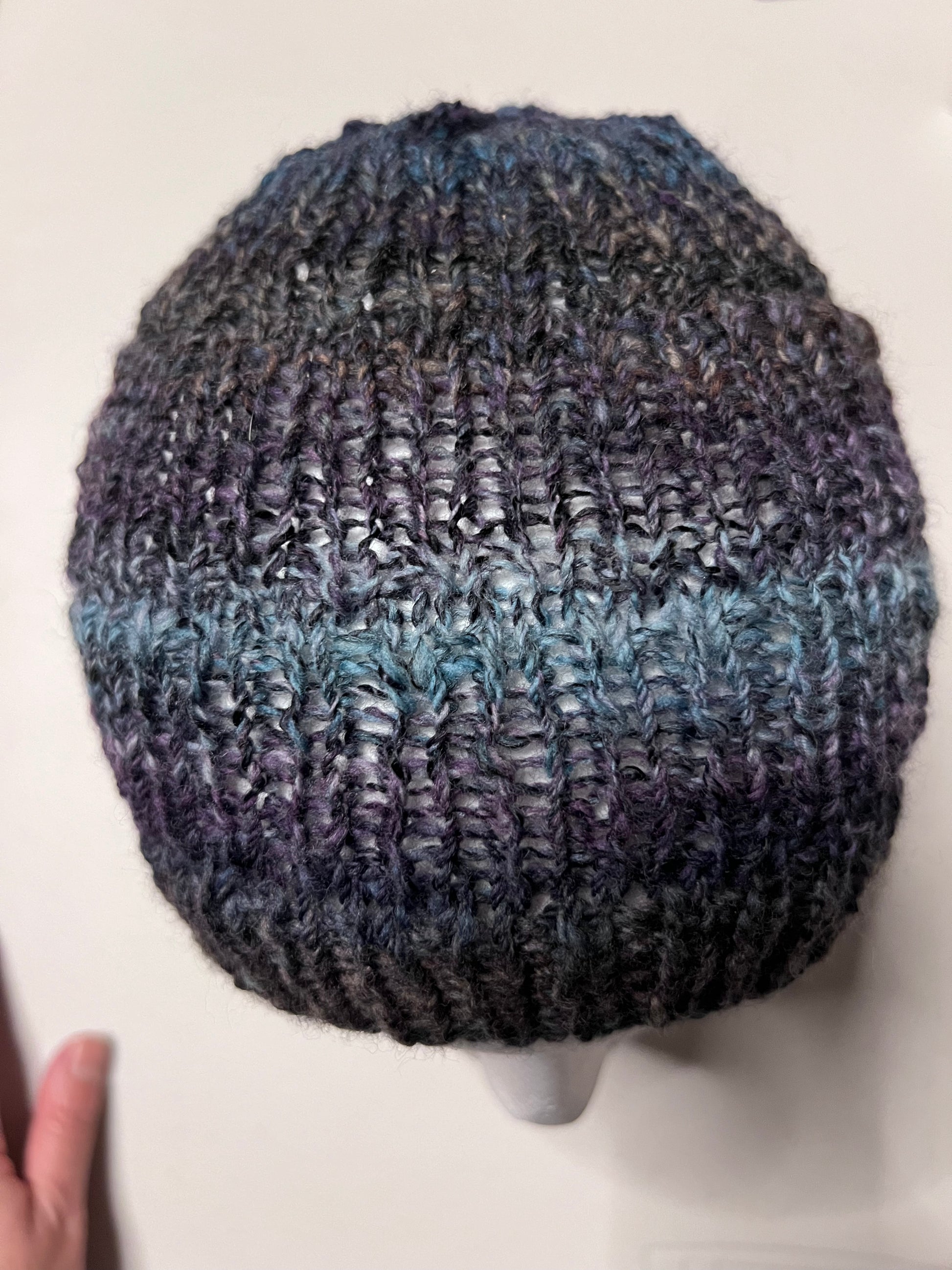 Hand knit beanie hat made from hand spun wool. This hat will keep your head warm and dry in cold weather, while looking stylish and sleek.